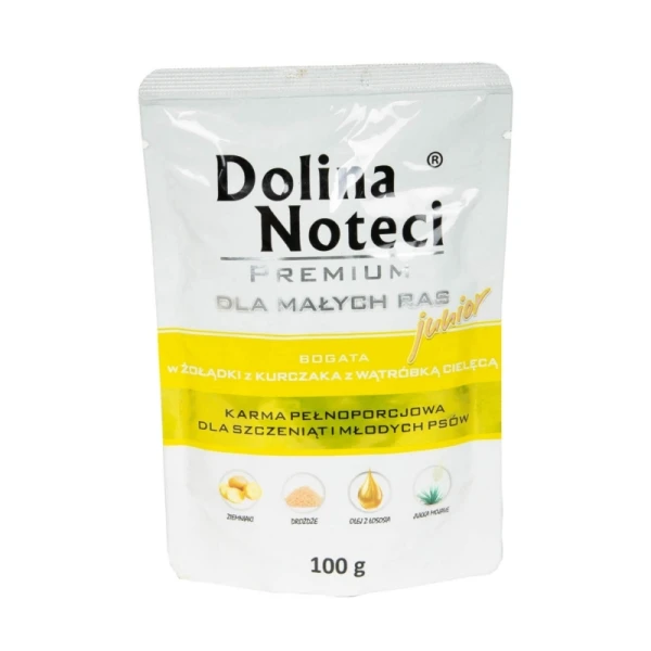 Karma mokra dla psa Dolina Noteci Premium Junior Bogata w Żołądki z kurcząt saszetka 100g